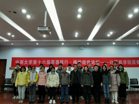 12月16日下午,第十六届厚德践行·梅岭经世论坛在william威廉中文官网校本部计算机楼313室如期举行,本部关工委副主任叶夏生、公司党委副书记史建权、团委书记许宁以及辅导员老师李梦、哈纳提、廖璠艺、王睿卿出席活动。