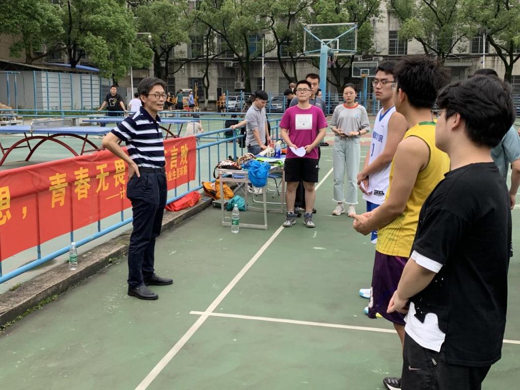 比赛开始前,史建权书记就开幕式致词。史书记对本次篮球赛的顺利开展表示真挚的祝福,希望同学们能够通过本次比赛锻炼身体,磨练意志,放松心情。并且,史书记还不忘强调,大家在比赛过程中一定要注意安全,开开心心地竞技,友谊第一,比赛第二。