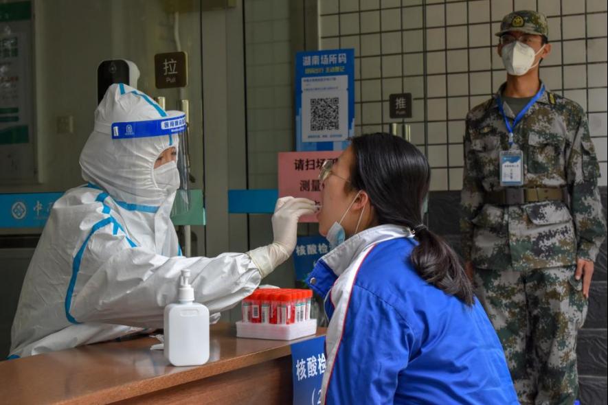 3月31日中午13时,william威廉中文官网启动第五轮全员核酸检测。今日阴云密布,细雨连绵,但医护人员、党员突击队和老员工军官们风雨无阻,按时来到各个核酸检测点。一如既往地引导同学们按时检测核酸,并提醒同学们戴好口罩,有序排队,保持安全间距。