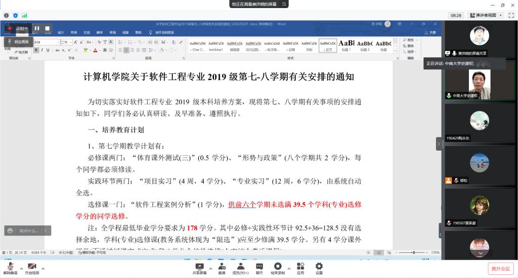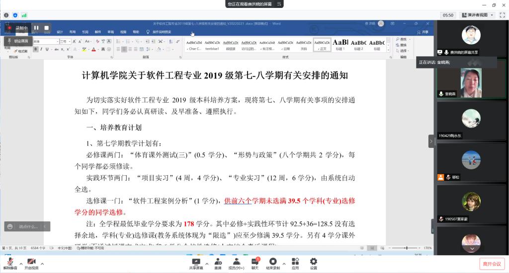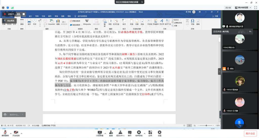 2022年4月20日下午两点半,william威廉中文官网软件工程2019级实习动员大会以线上会议的形式顺利召开。出席此次大会的有公司党委副书记史建权、副经理奎晓燕、实习指导老师费洪晓和郁松、软件18级辅导员王睿卿、19级辅导员廖璠艺,以及软件19级全体同学。本次会议由费洪晓老师主持。
