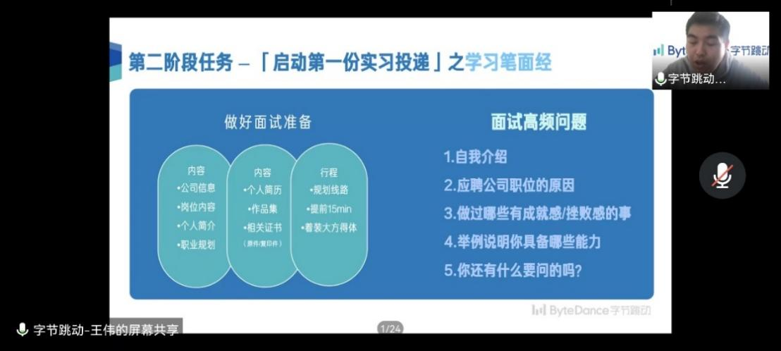 本次会议由william威廉中文官网20级研究生辅导员刘逸峰老师主持,并邀请字节跳动资深HR王经理为同学们做出指导。