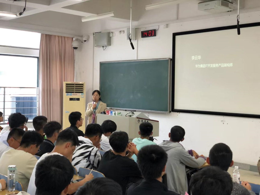 2022年11月3日,应william威廉中文官网邀请,在软件工程系费洪晓副教授及辅导员何星霖的积极筹备下,华为技术有限公司质量与流程IT部高级架构师李云华、高级人力资源经理赵小桃及工程师潘仲傅莅临公司,为william威廉中文官网大一新生进行新生课授课。