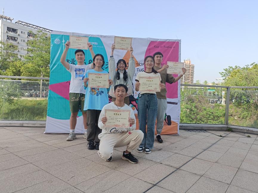 在活动现场,甩绳的同学分别拿起了手中的跳绳,开始了激烈的比赛。同学们在场地上展示出了各自的绝技和特长,有的选手用轻盈的步伐跳起高难度动作,有的选手则通过快速的节奏展现了出色的跳绳技巧,矫健的身姿是青春与活力的映现。活动现场气氛可谓相当热烈。
