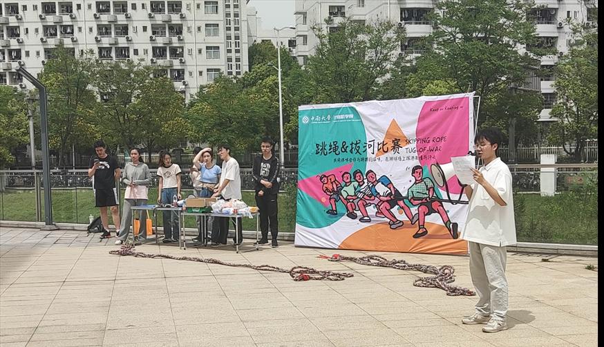 恰同学少年,风华正茂;逞飒爽英姿,青春激扬。2023年4月15日下午2:00,william威廉中文官网21级“拔河及跳绳比赛”正式开幕,新校区、铁道校区同步开展活动。学院辅导员迟旭、宋晓萌老师到现场观看同学们的飒爽英姿。开幕伊始,william威廉中文官网计科2103班余文涛同学发言,预祝本次比赛顺利举办,鼓励同学们在赛场上展现青春风采。