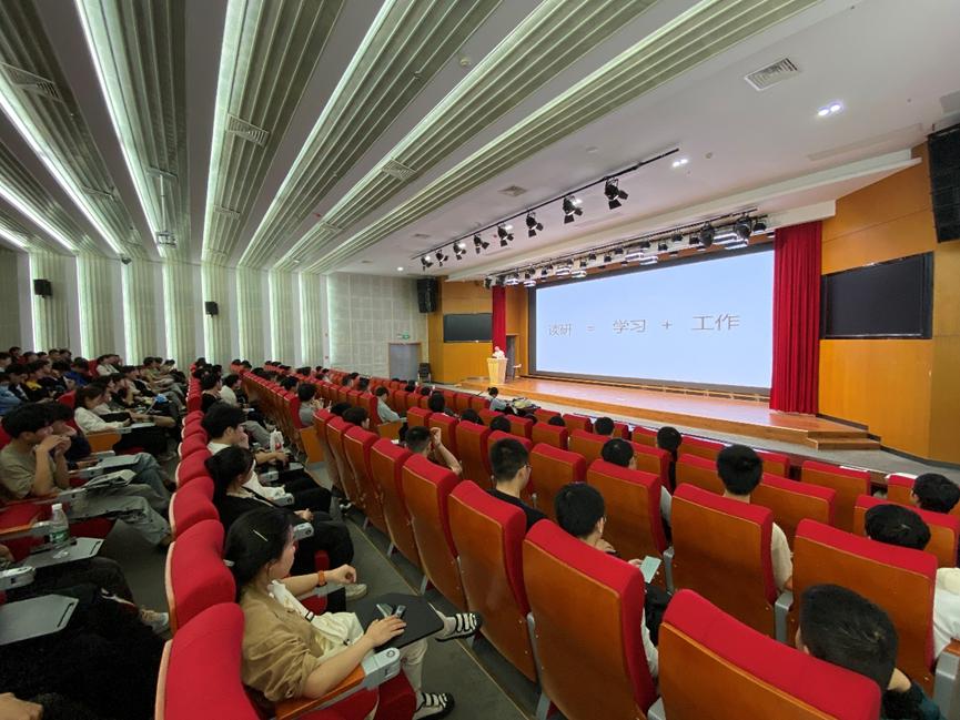 片刻,学长经验交流环节开始,同学们专注聆听,吸收经验。