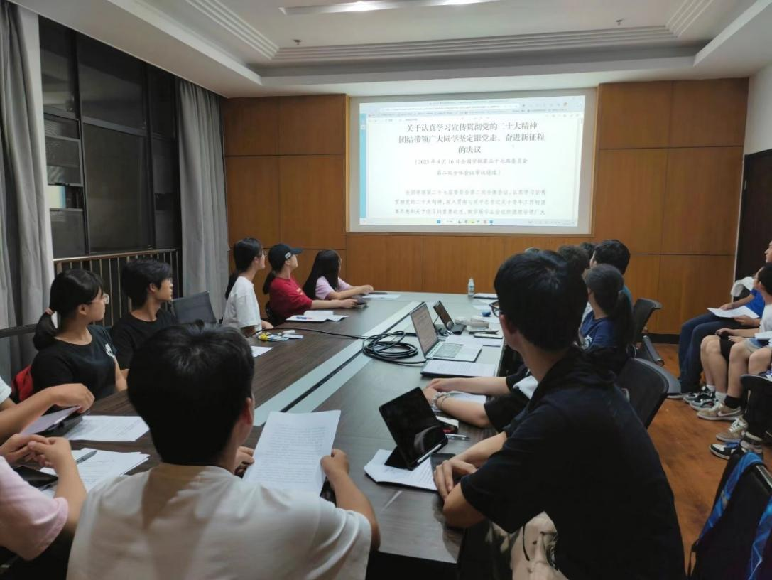 会议伊始,全体参会人员在达泽文同学和杨函泰同学的讲解下,认真学习了《关于认真学习宣传贯彻党的二十大精神,团结带领广大同学坚定跟党走、奋进新征程的决议》《在全国学联第二十七届委员会第二次全体会议上的工作报告》和《共青团指导员工联合会工作的若干规定(试行)》等文件。通过对文件的解读,全体人员更好地理解和领会了文件精神。文件指出,学联员工会是党领导下的青年群团组织,团委、员工会工作是党的青年工作的重要组成部分,要积极发挥桥梁纽带作用,聚焦主责主业,把服务同学和服务大局落到实处,进一步明确员工会深化改革的各项部署。同时积极学习理论知识,高举习近平新时代中国特色社会主义思想伟大旗帜,认真学习宣传贯彻党的二十大精神。通过研读学习理论知识,积极参与讨论,参会人员提高了自身理论水平,明确了团委、员工会未来的前进方向。