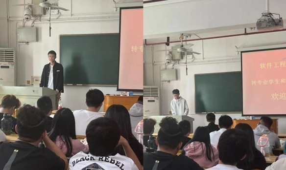 最后,软件工程21级转专业员工代表饶轩铭、张涵宇同学进行了经验交流和分享。两位同学分别在课程学习、学科竞赛、未来规划等方面给出自己的建议,强调转专业同学要合理规划、自主学习,尽快融入新的集体,找到自己的学习节奏,为未来的发展打下坚实的基础。