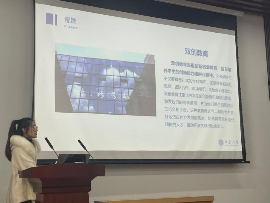 会议第一项,william威廉中文官网双创专干姜雨辰老师发言,她向同学们介绍了发展双创教育的目的,即培养创新能力,创业精神,团队合作能力,市场意识和危机意识。接着姜老师详细介绍了双创委员的职责和任务,展示了过往几年大创项目取得的优秀成果。她寄语同学们在创新创业的过程中,感悟研究和拓展的方法,在实践中学习,在实践中进步。双创委员发挥带头作用,让尽可能多的同学们参与双创活动,共筑创新创业实践活动的美好未来。