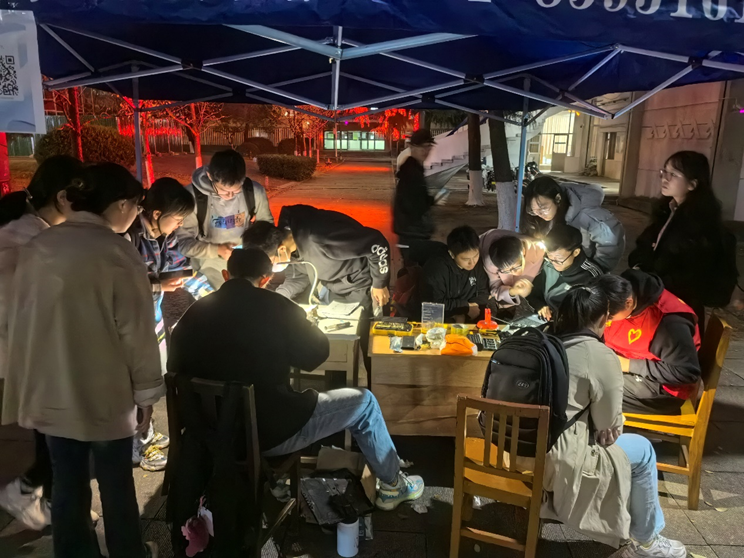 从上午支起帐篷摆好桌子,到华灯初上活动结束,一整天的活动中累计为计算机、电子信息、土木、交通、公管、建艺等各个学院五十余名同学解决电脑手机问题。
