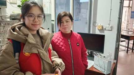 下午3时50分,志愿者们分组前往各个宿舍楼。虽正值严寒时节,可志愿者们的心却暖洋洋的。他们脸上洋溢着热情的笑容,敲开值班室的门。“宿管老师好!”“同学们好!”在一片亲切的问候声中,志愿者们递上了精心制作的贺卡——宿管读着同学们用心写下的一字一句,满眼都是感动。随后,志愿者又送上了提前准备好的热气腾腾的豆浆、护手霜和暖手袋等礼品。