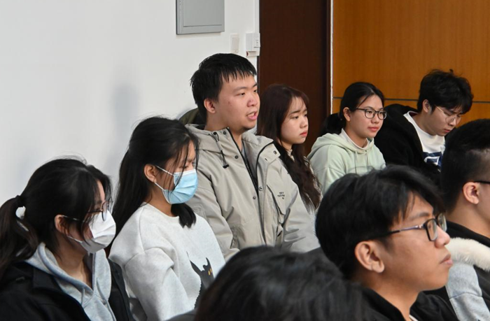 随后,各年级港澳台侨员工代表依次发言,针对年级、专业不同情况从生活适应状况、专业学习研究、员工活动参与、未来就业发展等方面提出相关问题与建议,老师与员工代表对此进行了深入的交流探讨。20级员工代表分享了有关专业学习方面的建议,针对员工专业学习基础薄弱的问题,提出可通过学校学院相关辅学课程辅助学习,如知新馆开设的期末辅学课程、学院开展的辅学义工互助队,在一定程度上有助于梳理知识体系,理解课程内容,助力考试通过。21级员工代表从就业方面提出专业实践的重要性,希望增加课程实践内容,提高员工动手能力,并就自己的实习经历分享经验。其他同学也陆续提出问题,老师们点对点解答,高低年级之间积极互动,共同探讨解决方案。