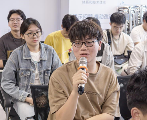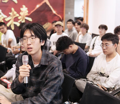 在接下来的学长学姐答疑环节,员工们踊跃提问,问题涉及学历要求、岗位选择、晋升通道和面试要求等方面,两位员工细致解答,现场气氛热烈。