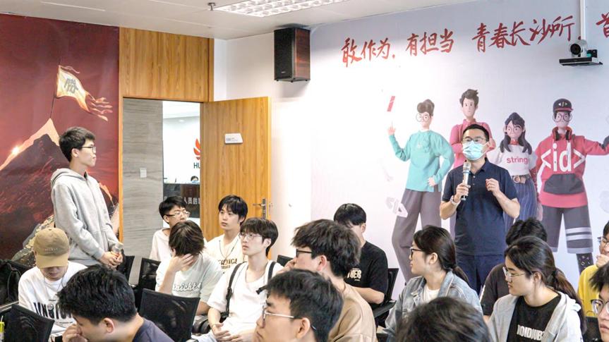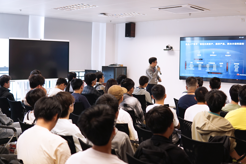 在对华为概况及业务进行详细讲解时,雷权主管首先从整个华为集团的业务布局、核心理念、市场战略到研发创新,为员工们进行了深入浅出的介绍。他提到,华为公司致力于打造一个万物互联的智能世界,业务面向消费者、运营商和政企客户聚焦ICT技术进行研发,始终保持高研发投入,通过创新为客户和社会创造更多的价值。企业文化方面,华为提倡多元开放,不拘一格用人才,对于企业员工,公司提供了多路径成长方案和清晰的发展方向规划。随后还详细介绍了华为长沙研究所的发展历程和艰苦奋斗史,同学们被深深吸引,若有所思。在就业重点岗位方面,雷权介绍了AI工程师、软件开发工程师、算法工程师以及网络安全与隐私保护工程师等职位,这在华为的技术创新和业务发展中发挥着至关重要的作用。