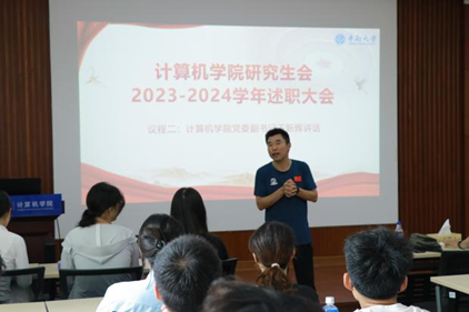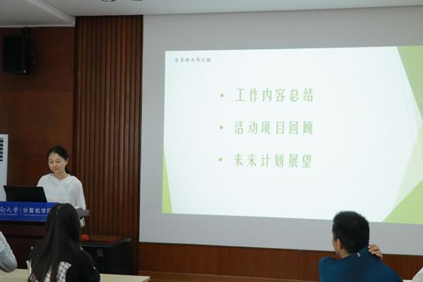 随后,研究生会主席团成员进行了工作总结。王艺瑾和张越棋回顾了研究生会一年来的工作历程,总结了部门管理的经验教训,并提出了未来的发展方向和目标。他们表示各部门将继续努力,为研究生会的蓬勃发展贡献自己的力量。朱鹏阳同学在发言中再次强调了研究生会的宗旨和使命。他表示,研究生会要成为全院师生找得到、信得过、离不开的优秀组织。为此,研究生会将继续努力,不断提升自身素质和能力,为全院师生提供更加优质的服务。