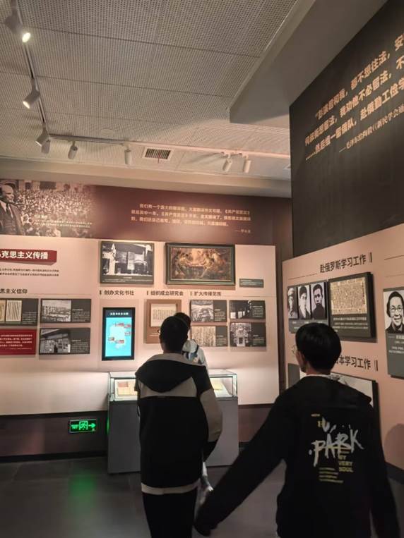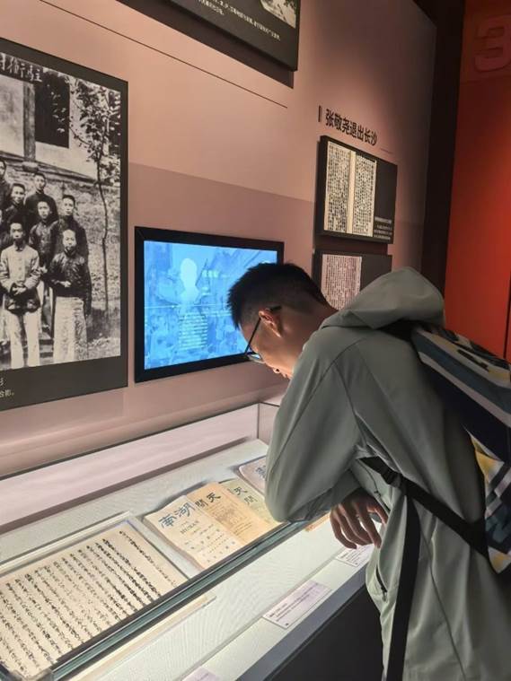 而一百多年后的今天,肩负着时代重任的中南学子来到这里,跟随先行者的足迹,从旧址的一砖一瓦、一幅幅照片、一件件展品中得到教诲。展厅中,新民学会会员为“争生存权,求学权”所做的抗争让同学们敬仰万分,奔赴世界各地勤工俭学的先进知识分子们的爱国精神让同学们赞叹不已。