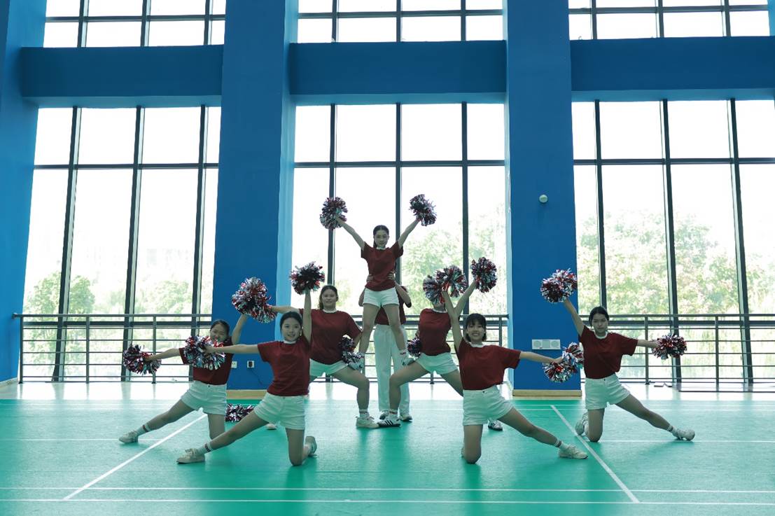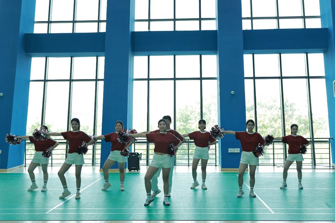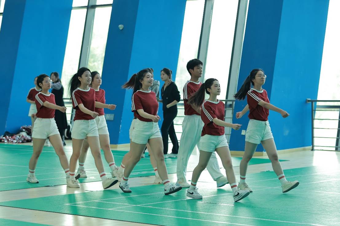 比赛的第一阶段为花球拉拉操比赛,选手们身着统一的服装,步伐整齐有力,斗志昂扬地步入赛场。随着音乐的节奏,队形变换,花球翻飞,选手们精准的动作和自信的眼神,充分展现了公司学子们的青春活力和团队精神。