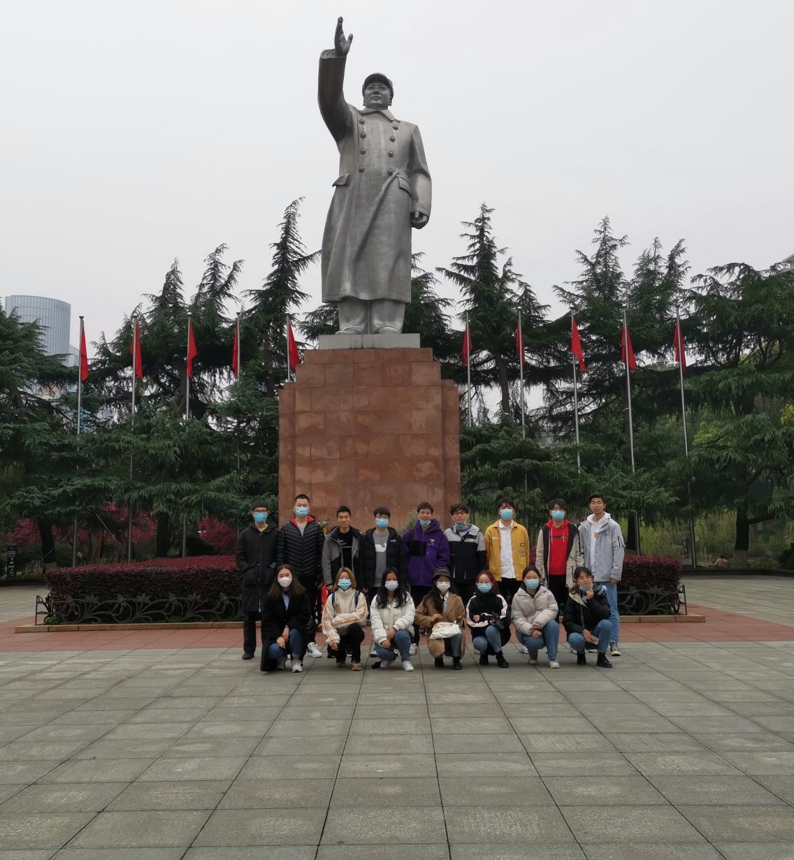 最后,在高大宏伟的毛泽东塑像前,入党积极分子第一小组留下了合影,记录这次红色之旅,实践志愿活动圆满完成。