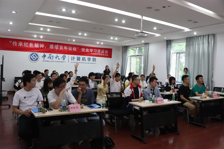 本次座谈会采用积分制,各班同学通过建党100周年红色文化分享、猜红歌、庆党生、知识竞答以及视频问答环节进行分数累计,总分前三的团队将为班级赢得奖品。