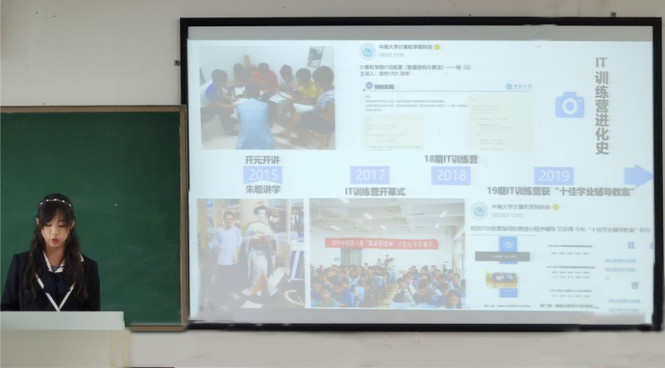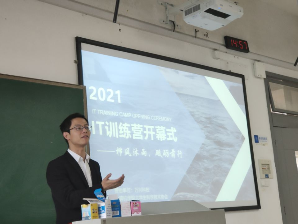 下午14:00整,开幕式正式开始,科协交流部副部长胡可走上讲台,向同学们简单介绍了IT训练营,希望同学们能够通过IT训练营激发学习兴趣,培养自主学习能力。