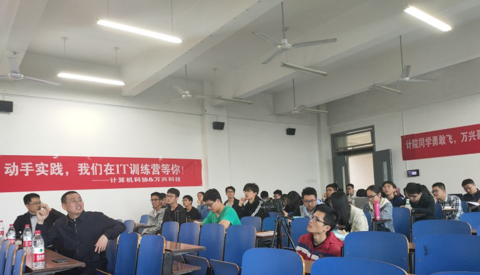 随后,万兴科技副总裁朱总与同学们分享知识与经验。他以一个过来人的身份,向同学们阐述了梦想的重要,人生的方向,为同学们在大学的迷茫生活中点起一盏明灯。
