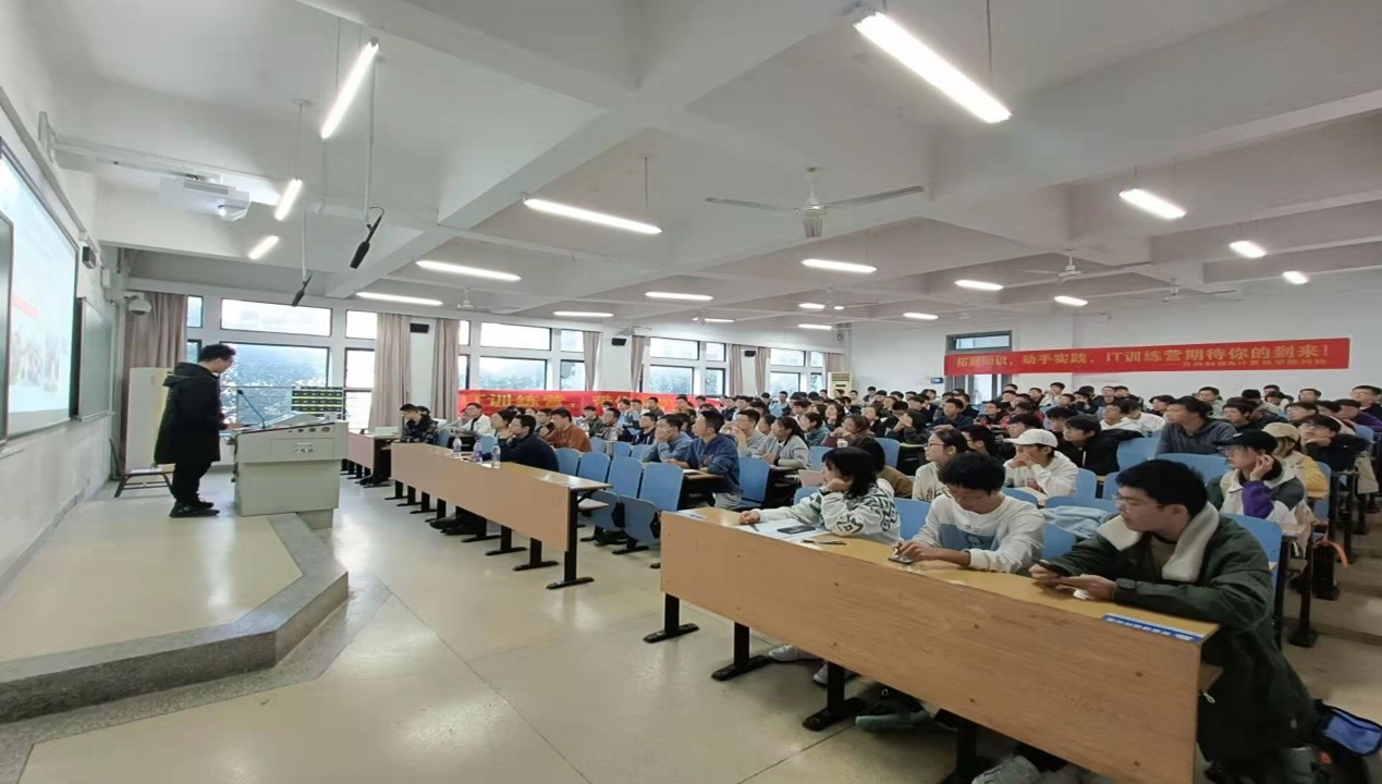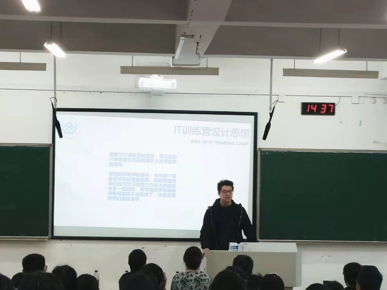 随后是科协交流部部长王宇鹏介绍IT训练营的历史,并提出今年的IT训练营与以往相比会进行一些改革,另辟蹊径,将理论、实践、交流三者相结合,整合课程与知识,不仅有技术讲解,还会有优秀的学长学姐向大家分享保研及竞赛经验,鼓励同学们积极参与,希望每一位同学在这次的IT训练营里都能有所收获。
