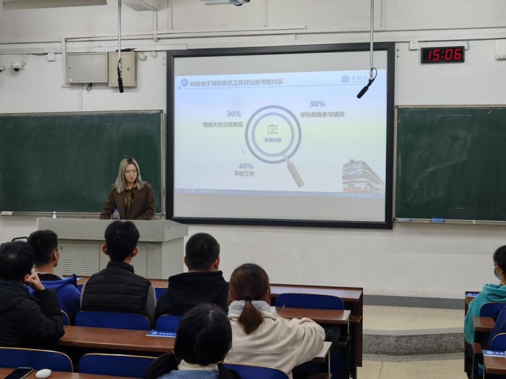 随后宋金霖同学介绍了创新创业基本知识,申报大创项目的基本流程,并介绍了材料的基本准备,最后分享了一些材料准备小技巧。