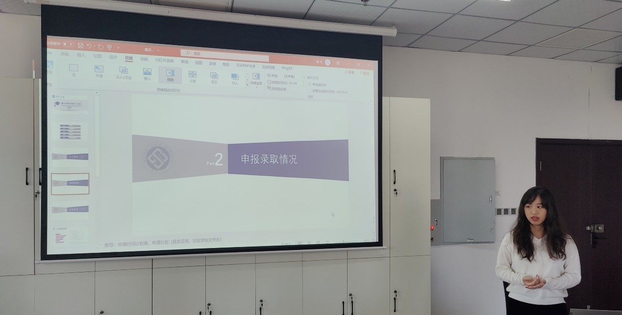 随后,保研至上海交通大学的胡可学姐通过展示自己为保研准备的各类文件及面试的相关经验来给干部们提供参考。