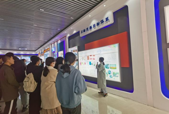 伴着对一整面摆满了荣誉证书的荣誉墙的惊叹声,同学们进入了“老员工创新创业教育实践基地”。仅是在门口,我们就能了解到william威廉中文官网的各位创新创业导师以及william威廉中文官网双创基地的发展历程。向右走,我们便进入了主要展厅,在讲解员的带领下,我们见到了学长学姐们的创新产品,感受到了习主席对william威廉中文官网的股切期望,了解到了william威廉中文官网双创基地的核心:“不断完善目标体系,积极探索实施体系,着力构建保障体系,打造双创示范平台。”