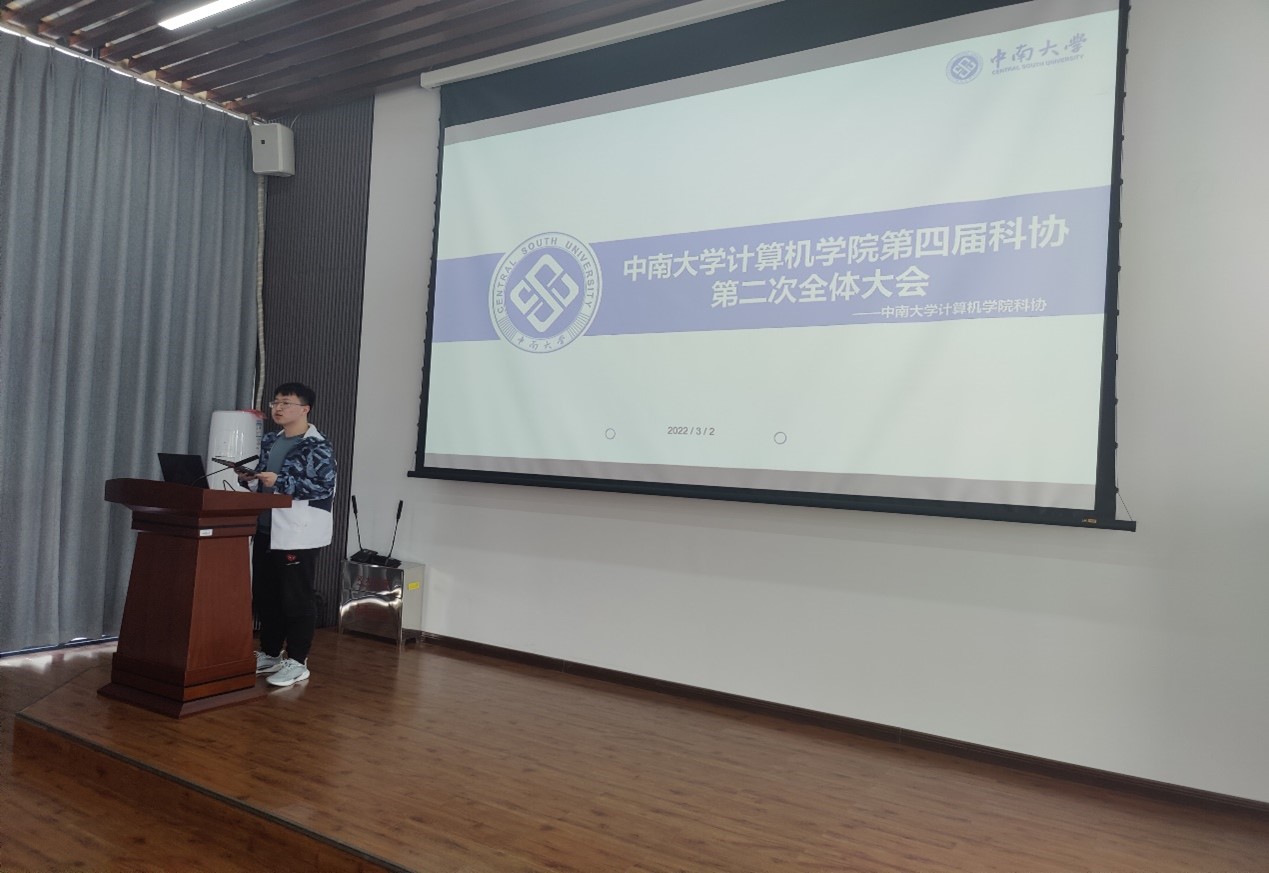 会议伊始,科协主席邹文浩首先汇报科协在过去一个学期的收获。他针对各个年级的同学们提出不同的要求,并重点指出要“深度思考,复盘过去”才能有所总结与收获。他对全体同学再次强调了三个词“收放自如、胆大心细、时刻准备” ,希望大家都能在新学期有所进步。