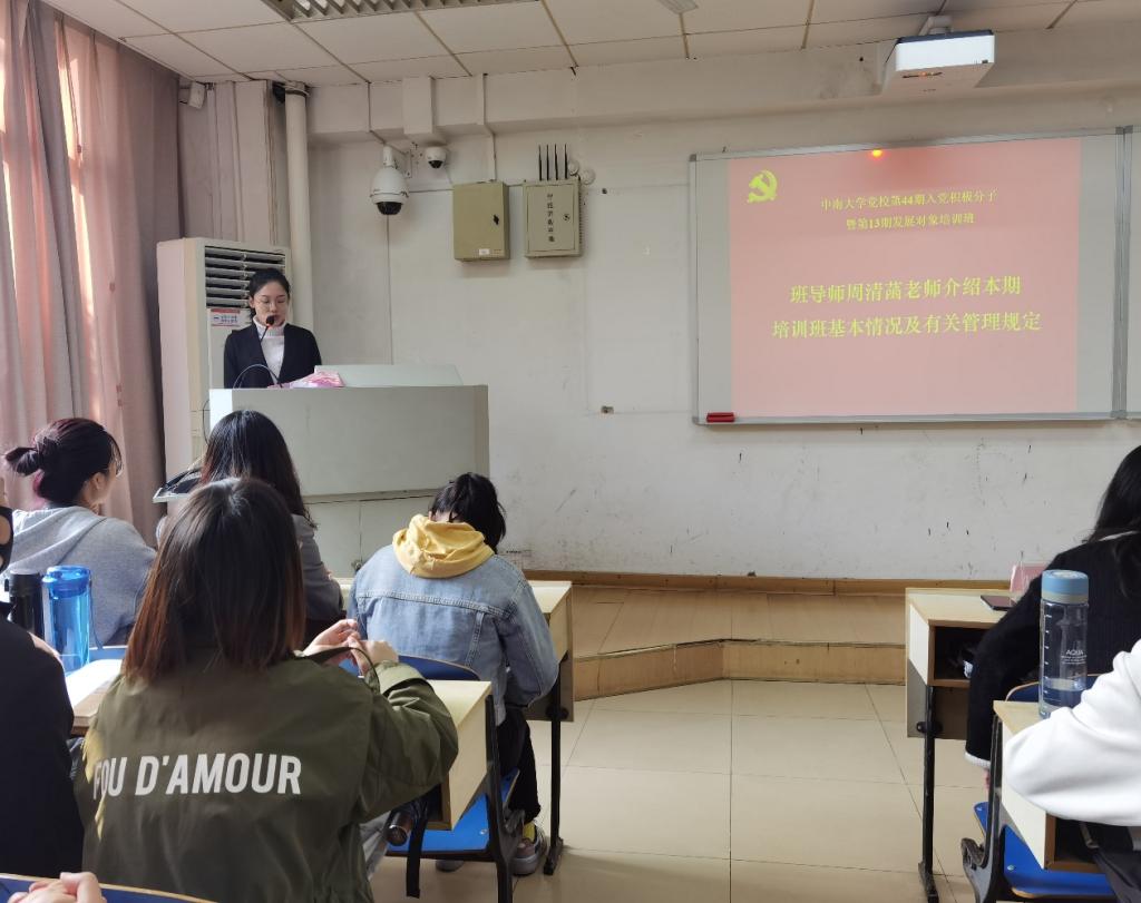 仪式进行第四项:培训班班导师周清菡老师介绍本期培训班基本情况以及有关管理规定,并希望各位学员认真学习,领会党课精神。